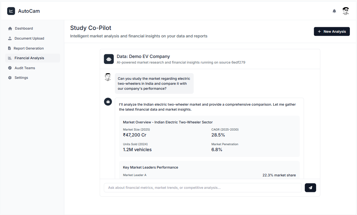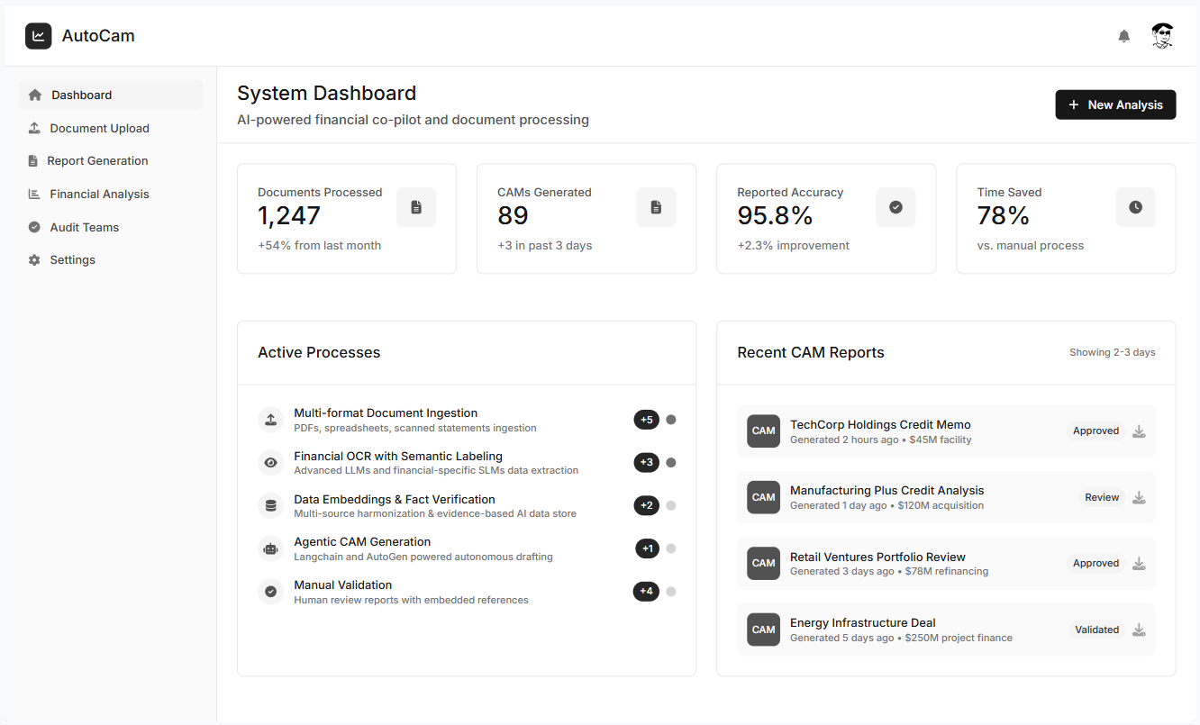 We deployed AutoCam — a comprehensive AI-powered financial analyst system designed to streamline and automate the end-to-end CAM workflow.